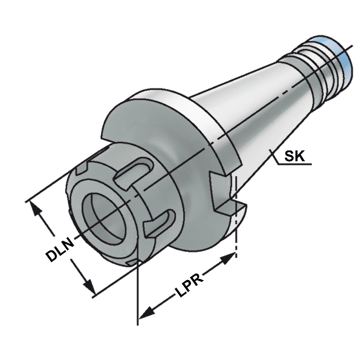 För montering av verktyg med raka skaft i spännhylsor.