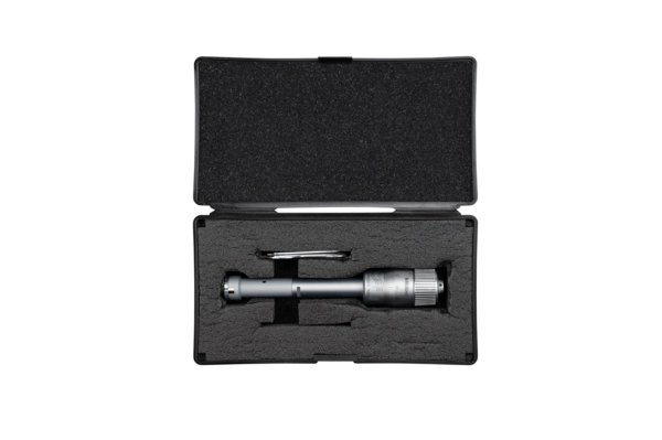 Analog trepunktsmikrometer. Mätytor och kona i härdat verktygsstål. Friktionsspärr garanterar repeterande mätningar.