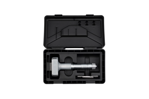 Analog trepunktsmikrometer. Mätytor och kona i härdat verktygsstål. Friktionsspärr garanterar repeterande mätningar.