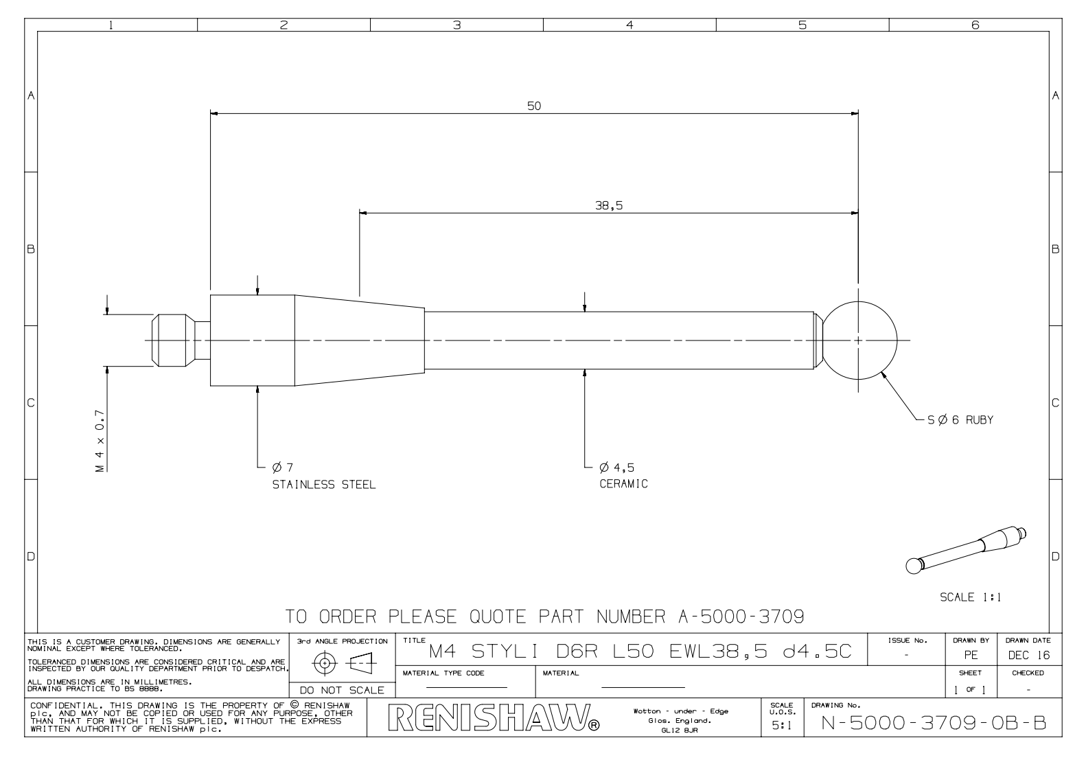 Raka mätspetsar är avsedda för att inspektera enkla mått där direkt, obehindrad kontakt med en uppmätt yta är möjlig. Ett keramiskt skaft har låg vikt men är ändå mycket styvt och har inbyggt kollisionsskydd. Rubin betraktas som branschstandard för spetsen på mätspetsar. Det är ett av de hårdaste materialen som finns tillgängliga och är lämpligt för de flesta applikationer. På grund av att avlagringar fastnar rekommenderas rubinspetsar inte för att skanna aluminiumdetaljer.