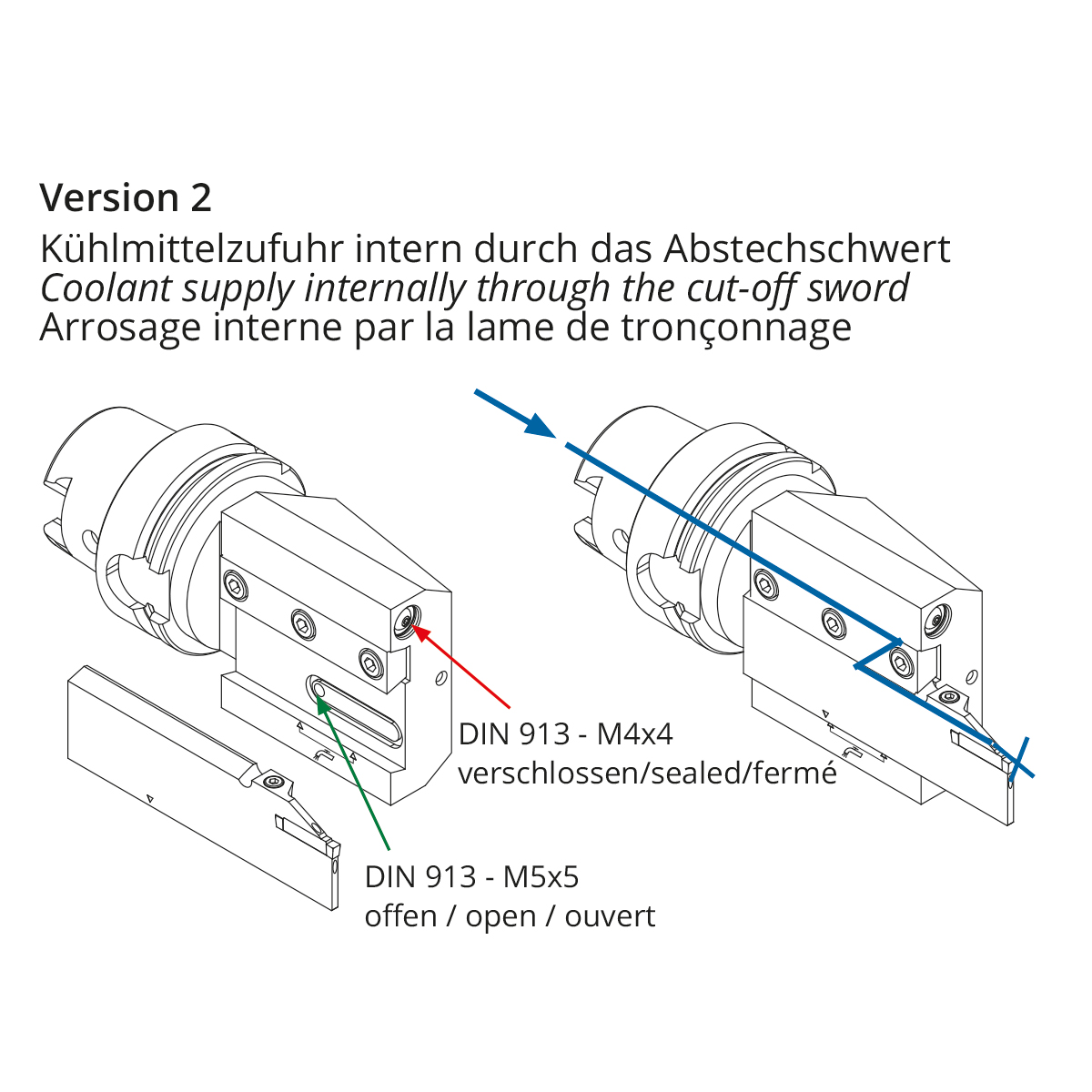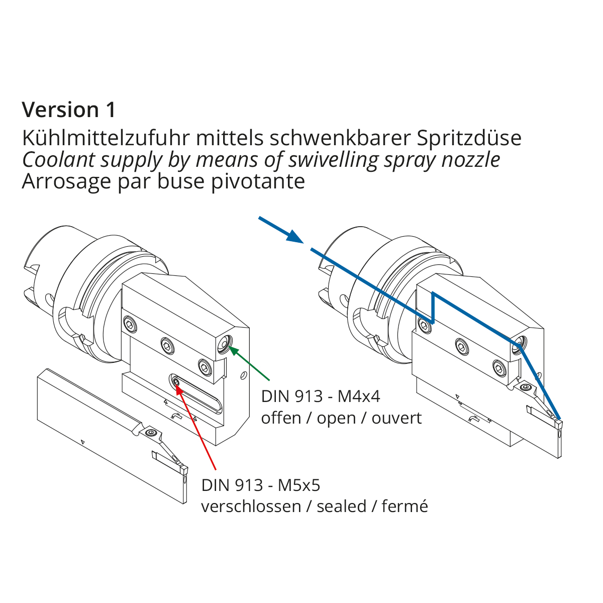För avstickningshållare med kylvätsketillförsel direkt till skäreggen. Spraymunstycket kan stängas.